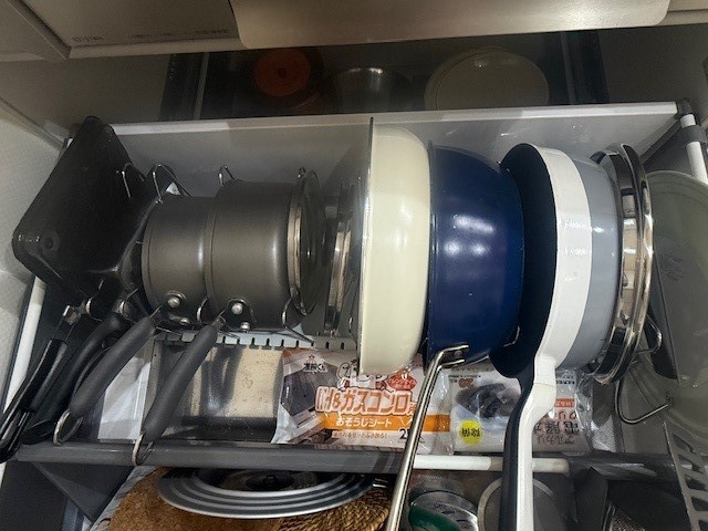 大きな土鍋も入れたかったのですが入りませんでした(高さが足りなかった・・・)
